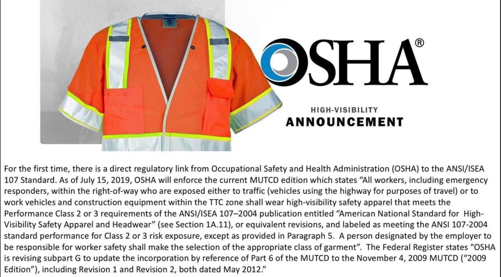 Bunker gear, dark clothing with a reflective stripe are NOT hi-viz and do not meet the OSHA, ANSI or MUTCD standards… So make the RIGHT choice and dress for safety. 🦺
