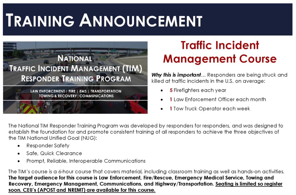 Or feel free to contact our very own Billy Green, he is one of the instructors with the Alabama Fire College and he can also coordinate with Ken Colvert of ALDOT.
